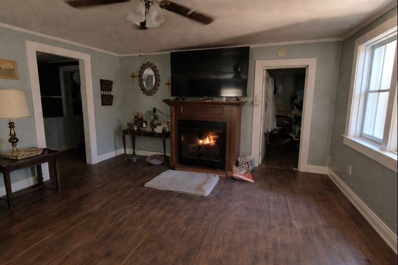 Great opportunity to pick up a single-story home with tons of potential on a spacious lot. This property features a covered front porch, vinyl siding, and a functional layout with multiple living areas. Inside you’ll find a large kitchen space, a living room with a fireplace, and several rooms ready for renovation and updates.